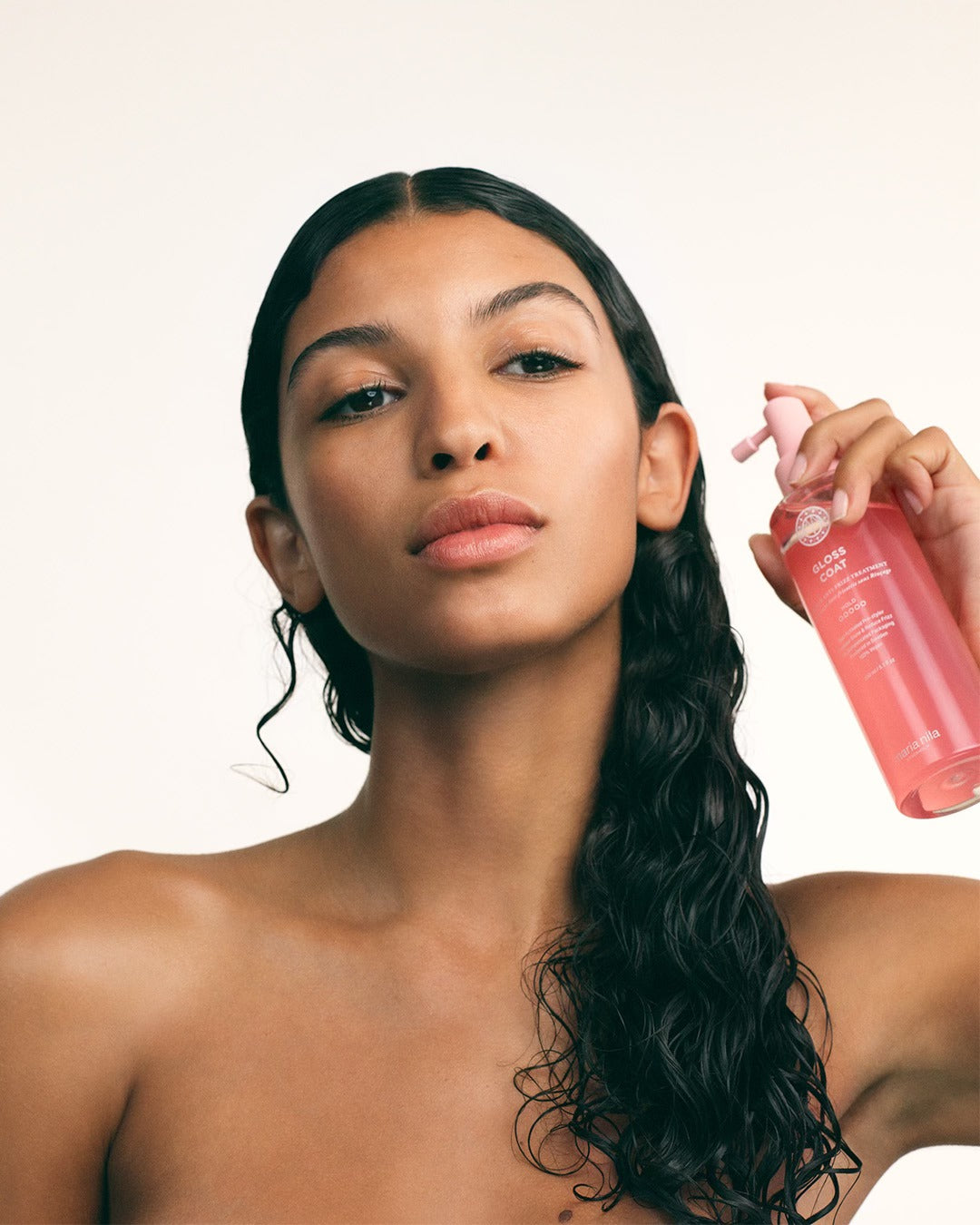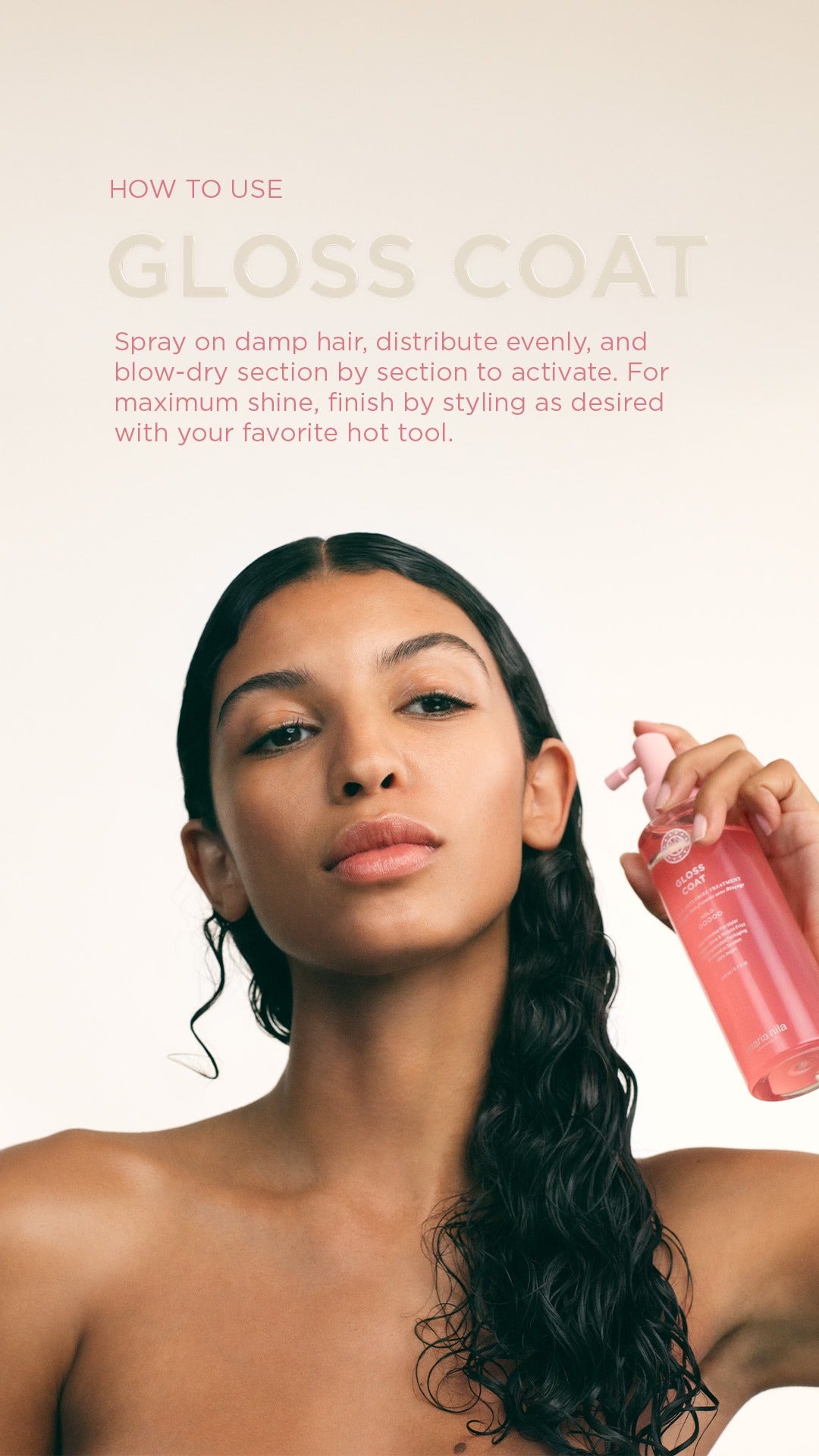Gloss Coat er en varmeaktivert utglattende behandling som forvandler håret ditt med langvarig glans, kruskontroll og fuktighetsbeskyttelse, samtidig som den beskytter håret mot varmeskader opptil 230 °C. Med en frisk, fruktig-blomsterduft av rødt eple, fresia og sandeltre.